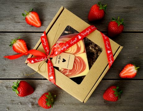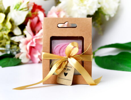 Nasze produkty są pięknie zapakowane na prezent, przewiązane wstążeczką.