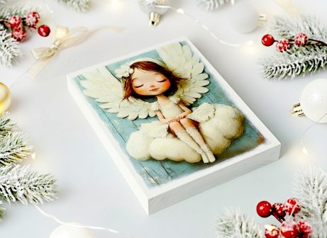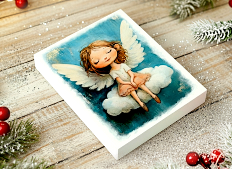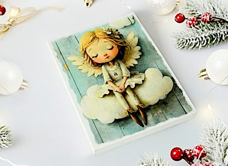 Piękne aniołki na drewnie - wykonane metodą Decoupage.