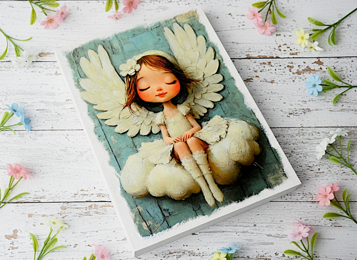Wymiary obrazu to 20x15x2,5 cm. Obraz zapakowany jest w bezbarwną folię zabezpieczającą oraz przewiązany złotą wstążeczką.