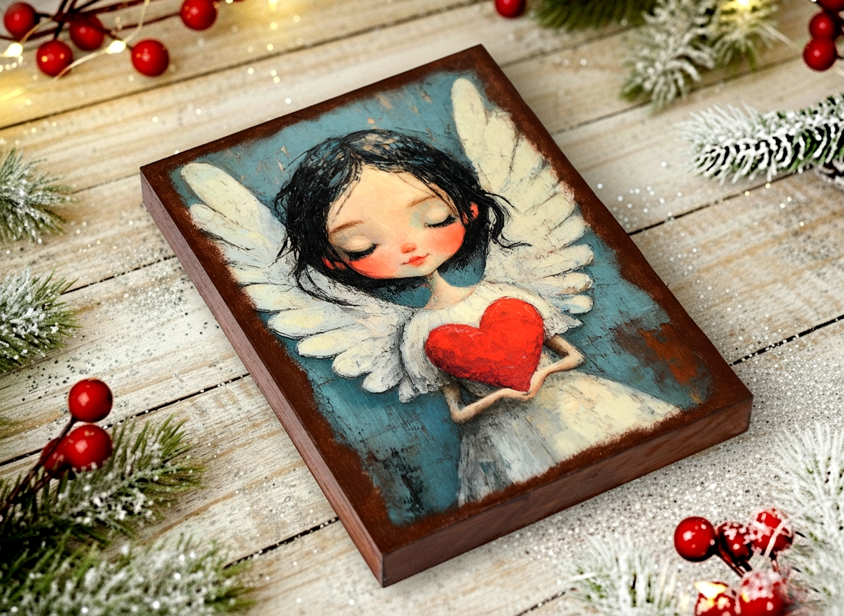 Napisz pierwszą opinię o „Aniołek Stróż świąteczny na desce 20x15cm”
