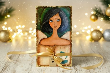Anioły na drewnie wykonane metodą Decoupage, ręcznie zdobione. Każdy z obrazów ma wywiercony otwór do powieszenia na ścianie.