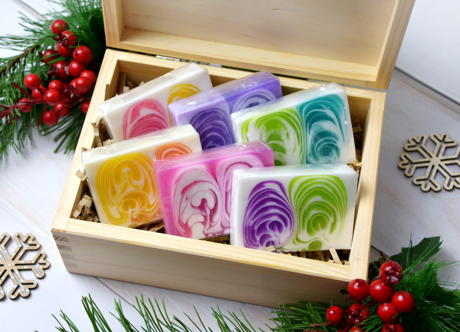 Mydełka wykonane są z naturalnych składników – ich zapach zachwyca, a kolorystyka cieszy oko.