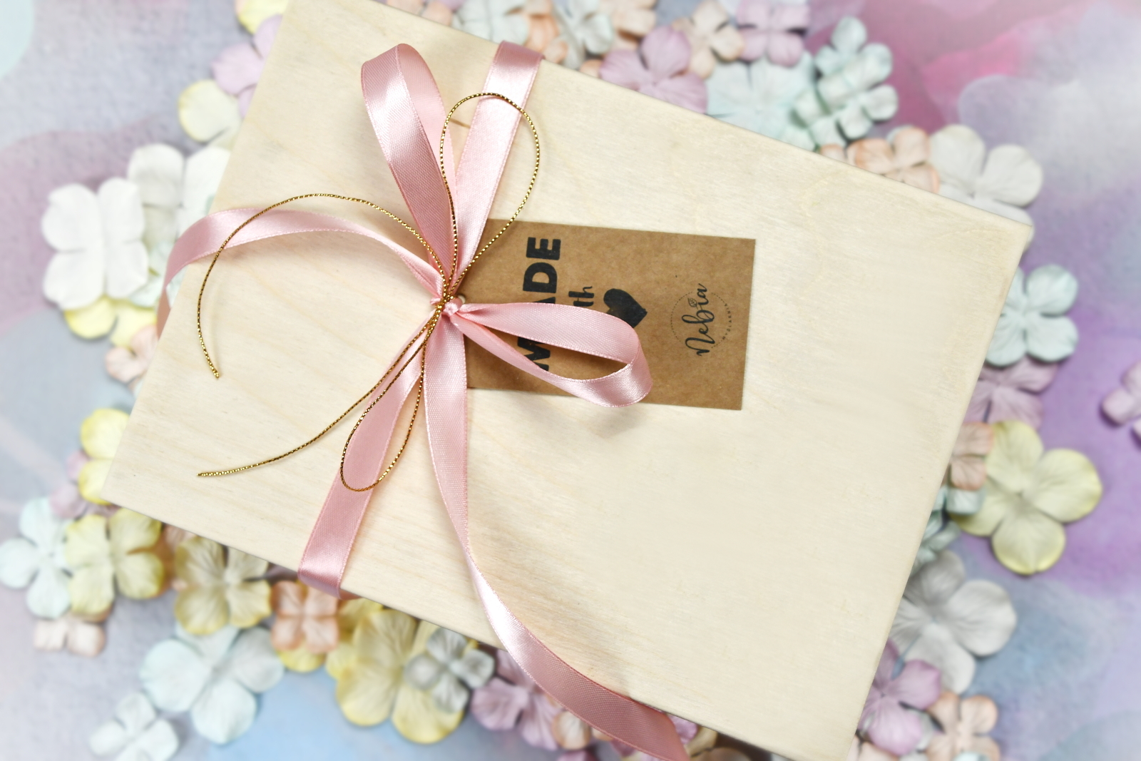Pojedyncze mydełko waży około 100g (+/- 5g ). Każde mydełko jest zapakowane w folię zabezpieczającą przed utratą wilgoci i aromatu. Posiada informację o rodzaju mydła. Pudełko drewniane ozdobione jest wstążką. Po zakupie wybierz jej kolor oraz rodzaj mydełka.